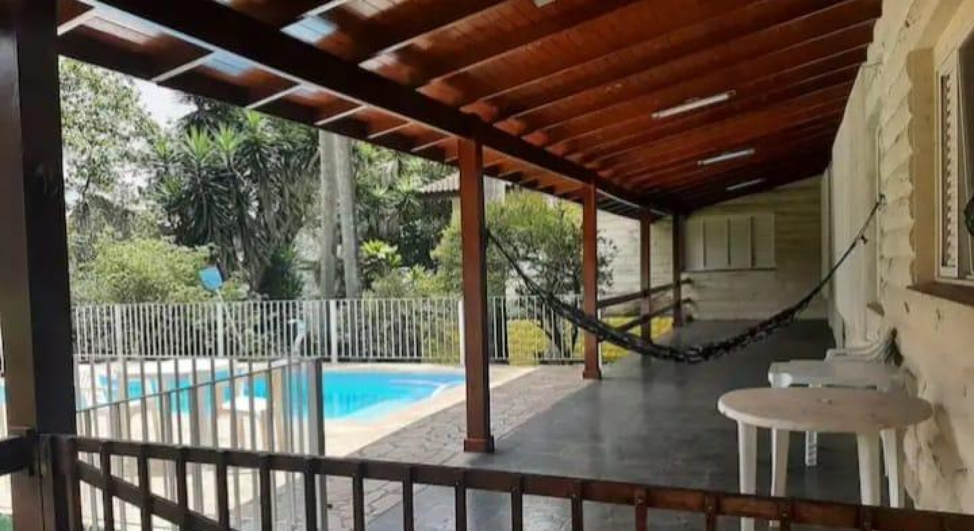 A casa possui 4 quartos, 1 sala de estar, 1 sala de jantar, 3 banheiros, cozinha, piscina, garagem para 3 carros, área de lazer com fruteira, churrasqueira, alpende, vista para represa, lareira.