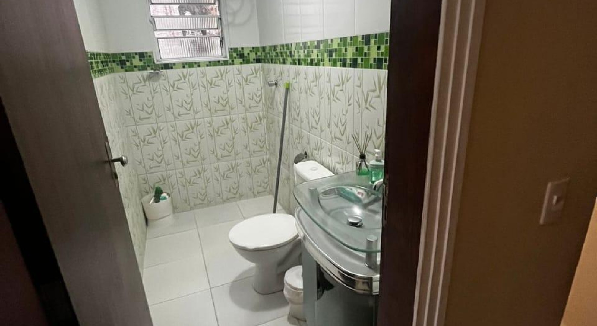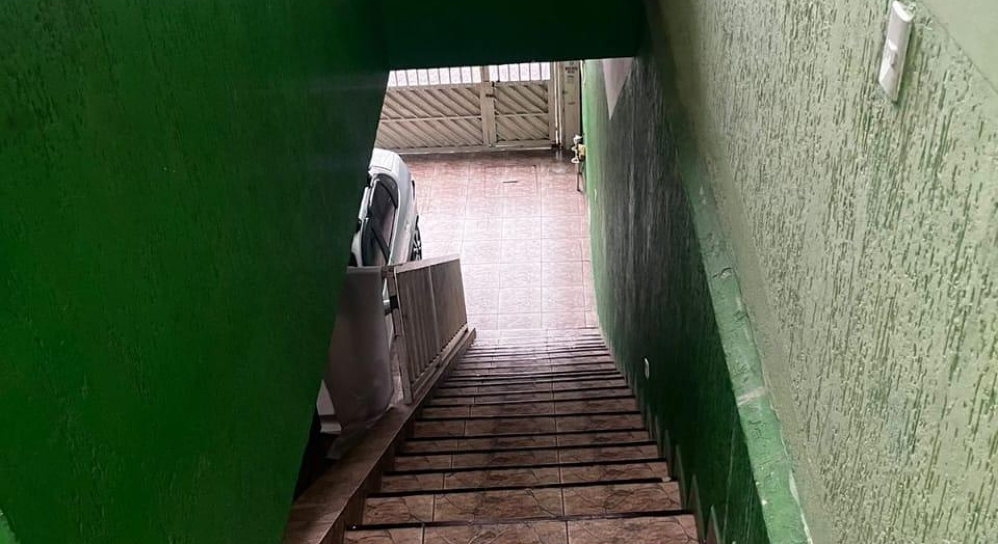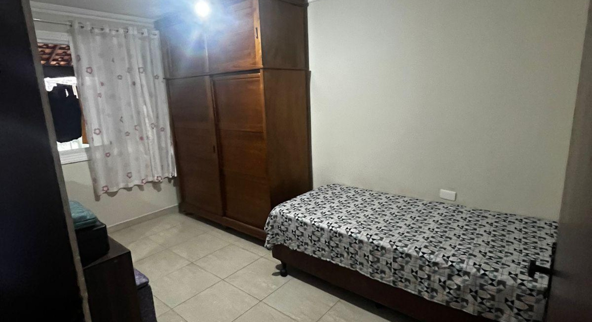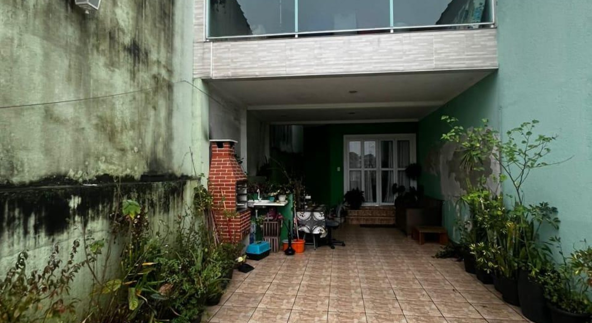 Tem 3 quartos, sala de jantar e sala de estar, cozinha, área de serviço com churrasqueira, e garagem com vaga até 2 carros.