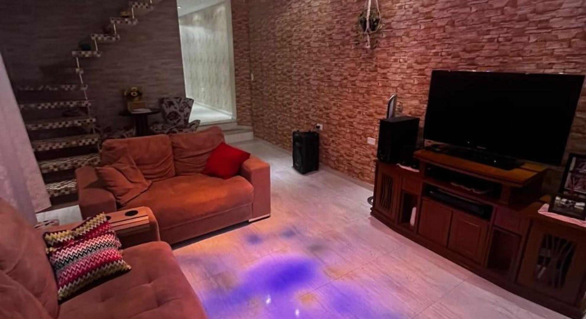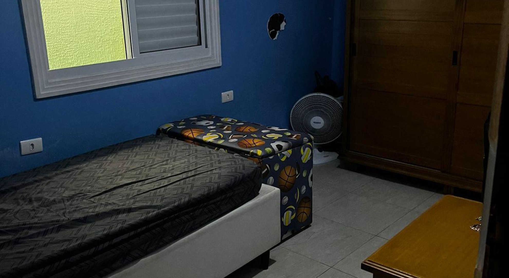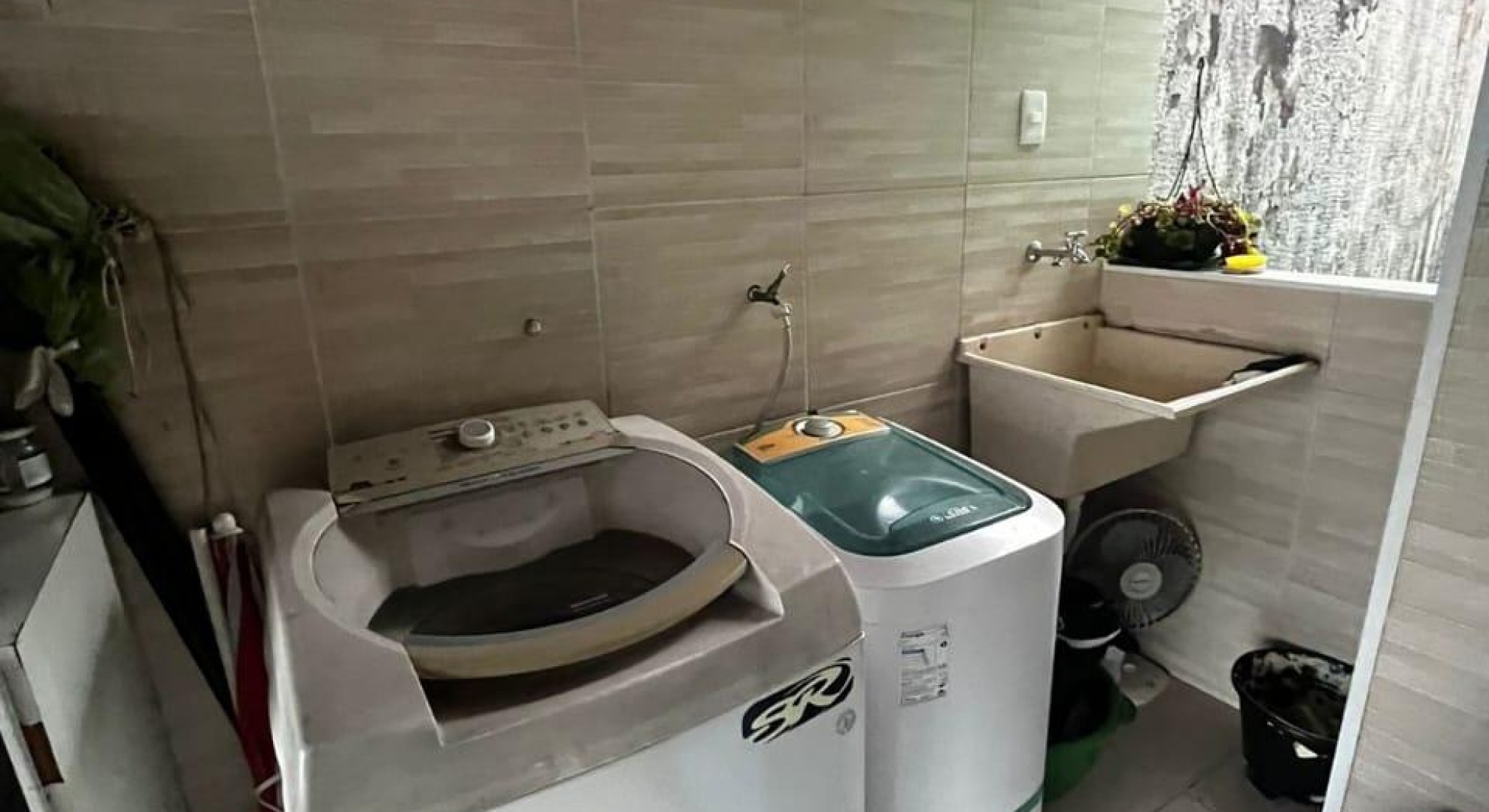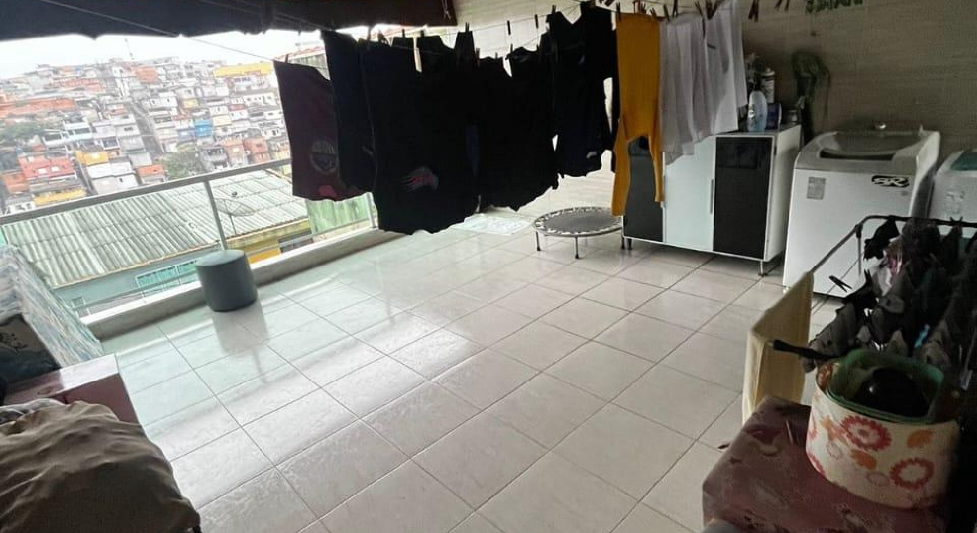 Tem 3 quartos, sala de jantar e sala de estar, cozinha, área de serviço com churrasqueira, e garagem com vaga até 2 carros.