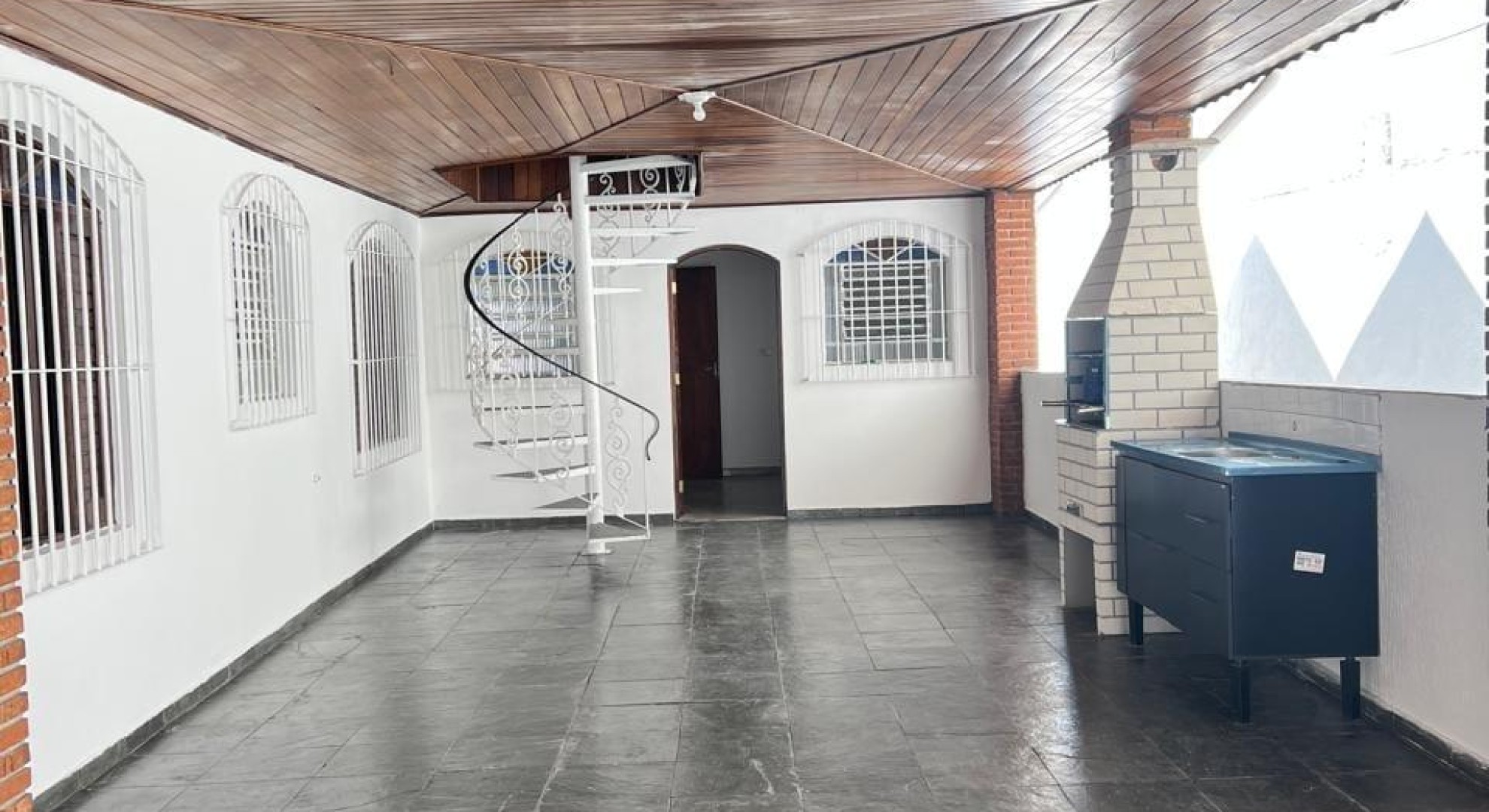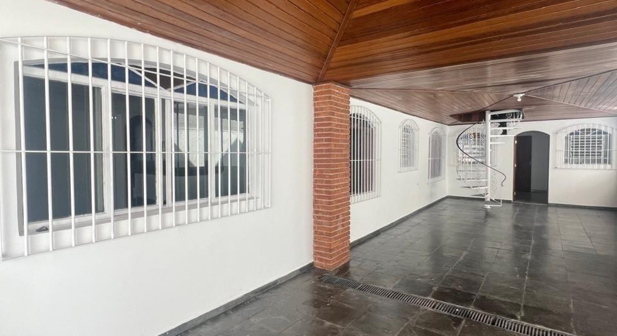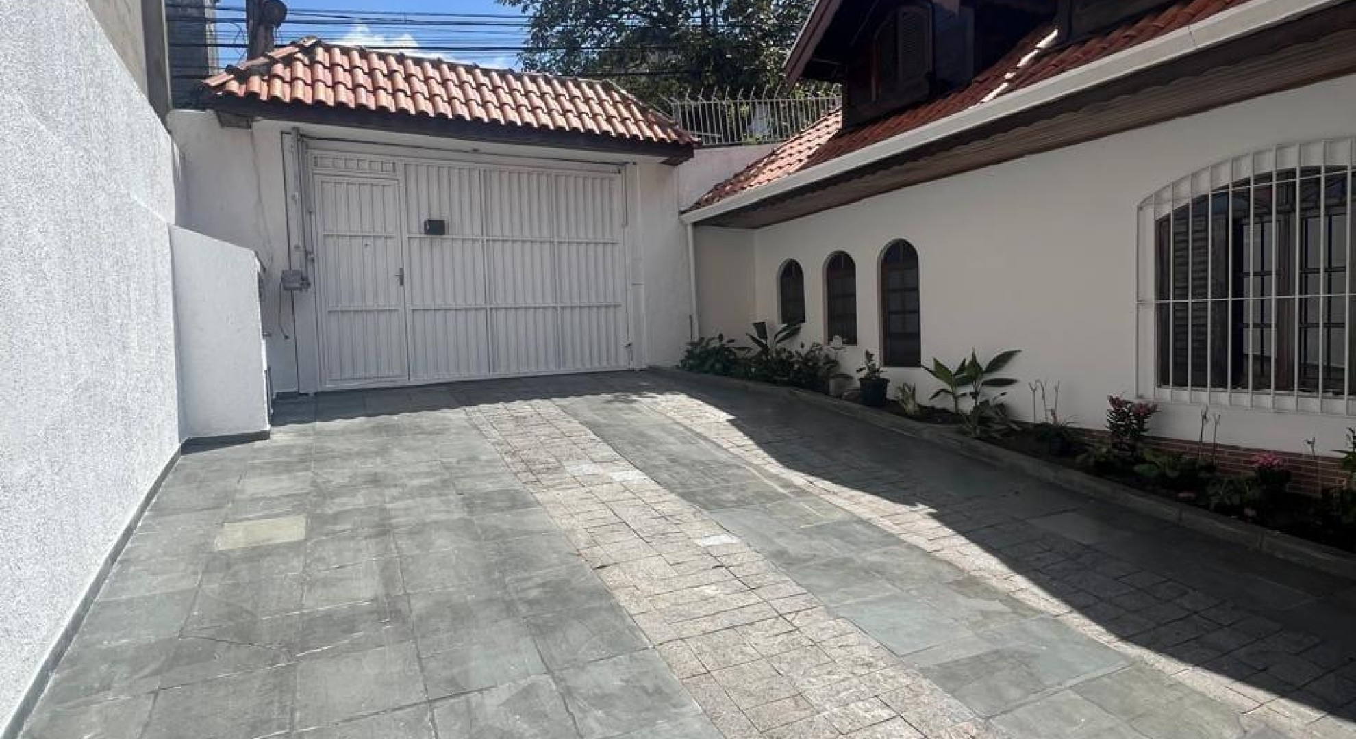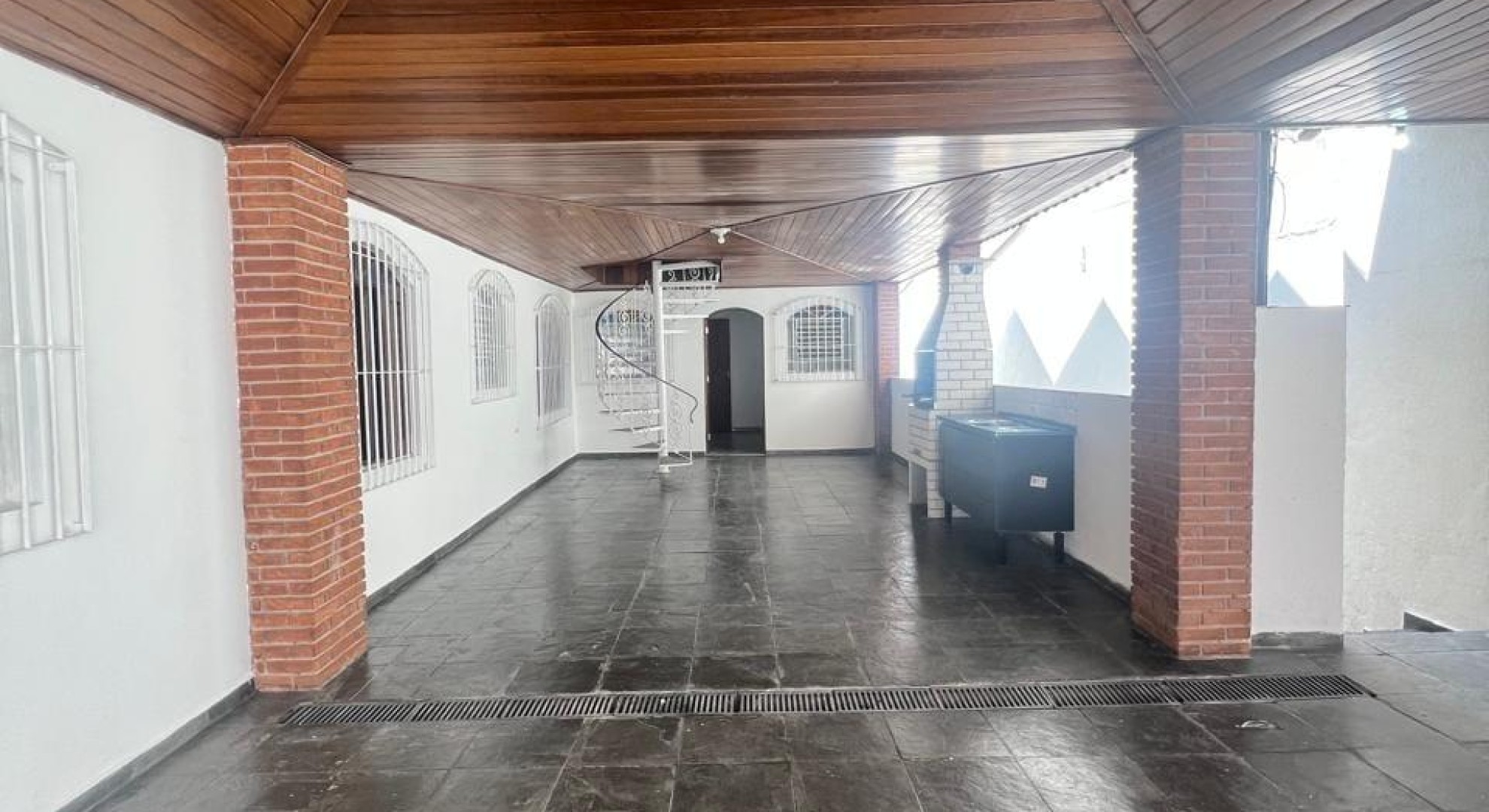 A casa tem seus seguintes domínios: 1 garagem com vaga para 8 carros, 3 dormitórios, 1 suíte, 1 cozinha, área com churrasqueira, 1 lavanderia e 1 sótão de madeira.
